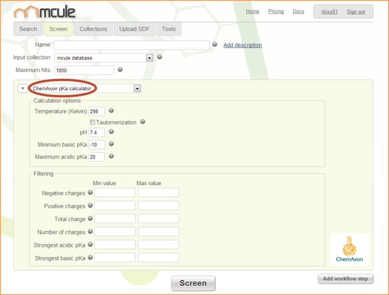 Calculates pKa values at the given pH. Not effective in Strongest acidic and basic pKa calculations.